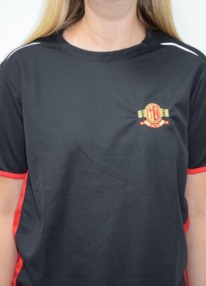 - *NEW* KMS PE Light Weight Unisex Top with LogoNew KMS PE Top with school logo (AVAILABLE FOR DELIVERY MID JULY 23) Black with red trim Crew Neck Style Silver reflective details Curved back yoke design Contrast colour panels and binding APTUS branded internal tape 100% Polyester Mesh, 160 gsm 40° wash Learn More£11.95