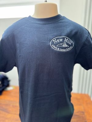 - New Mill Junior school navy or white polo shirt with school logoChildren's Polo Shirt Enzyme washed for extra soft hand-feel and reduced shrinkage, 50% Polyester 50% Cotton, Reactive Dyed, Knitted Collar & amp; Hemmed Sleeve, Taped Neck, Name Tag on Neck Label, 3 Self Coloured Button Placket. All sizes are to fit chest/bust size and not the actual size of the garment. Learn More£8.50