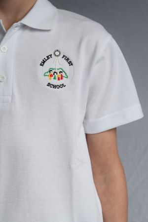 - Emley First School Polo Shirt White (Including School logo)Children's Polo Shirt Enzyme washed for extra soft hand-feel and reduced shrinkage, 50% Polyester 50% Cotton, Reactive Dyed, Knitted Collar & amp; Hemmed Sleeve, Taped Neck, Name Tag on Neck Label, 3 Self Coloured Button Placket. All sizes are to fit chest/bust size and not the actual size of the garment. Learn More£8.50