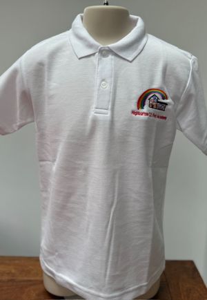 - Highburton CE First Academy Polo Shirt White (Including School logo)Children's Polo Shirt Enzyme washed for extra soft hand-feel and reduced shrinkage, 50% Polyester 50% Cotton, Reactive Dyed, Knitted Collar & amp; Hemmed Sleeve, Taped Neck, Name Tag on Neck Label, 3 Self Coloured Button Placket. All sizes are to fit chest/bust size and not the actual size of the garment. Free delivery to your School with this item. Learn More£8.50