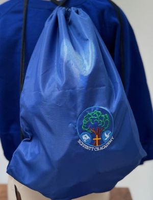 - Scissett C.E. Academy PE/Gym bag Blue (including academy logo)Material: 210D polyester. •Water resistant fabric. •Drawstring carry handles. •Capacity 11 litres. Dimensions: 45 x 33 cm Learn More£6.00